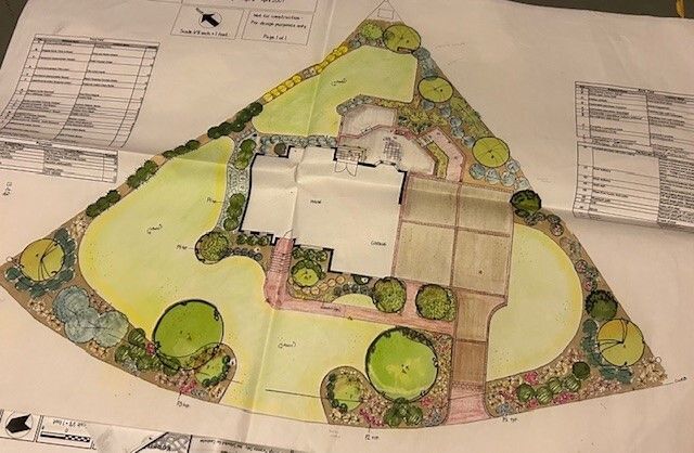 Landscapes also include hardscaping, like patios, walls, and walkways. So much goes into picking the stone and brickwork which often become focal points of outdoor living spaces. And once all my design choices are put on an idea board, I can start drawing my vision. However, the cost always looms overhead so often blue stone might get switched out for a different stone or a manufactured brick; mid-sized trees are replaced with younger ones; and so on.
