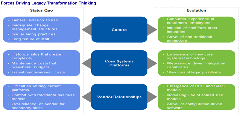 Insurers may succeed or fail over the next five to seven years depending on their ability to innovate the service experience they provide to agents and customers. The issue should not be how to operate the business while allowing for the dead weight of current legacy systems, but rather how eliminating them as constraints will move the business closer to its strategic goals. And it is not a question of whether these constraints must be removed, but when.