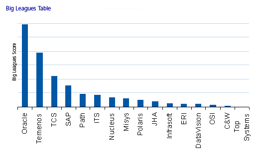 In the report, Big Leagues Table 2010: Global Core Banking Sales Ranking, Celent provides a detailed look at the core banking deals and measures the number of new name banking deals that vendors won in the 12 months ending September 30, 2009. Celent has developed a scoring methodology to rank the core banking vendors to score them on their deals during the time period October 2008 to September 2009. The Celent Big Leagues Table assesses the success of a core banking vendor based on a proxy for value of the deals won, rather than the number.
