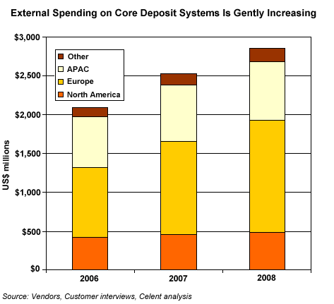 "US banks will not be making any significant moves in core banking. Growth in Eastern Europe is strong as banks modernize their systems. The growth of the economies of India and China are placing increasing demands on the banks and therefore the banks' core systems," says Bart Narter, author of the report and senior analyst in the banking group at Celent.