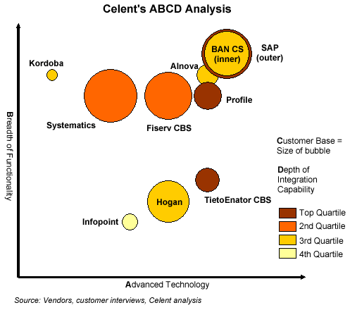 Celent predicts that many banks that have not previously considered external solutions will begin to do to so. While many of the largest banks are running homegrown solutions, they are taking another look at solutions from vendors as their old systems show the strain of many years of maintenance. Modern systems are promising the flexibility and agility that come with youth. The report examines the solutions for large banks, that are either looking to maximize use of old solutions or considering new core systems. The solutions analyzed include: Accenture Alnova, CSC Hogan Systems, FIS KORDOBA, FIS Profile, FIS Systematics, Fiserv CBS, SAP for Banking, TCS BANCS, TietoEnator CBS, and TriSyn Infopoint.