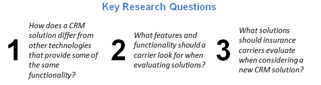 This report is focused on enterprise solutions for larger-scale organizations similar to most US insurance firms. The report does not include CRM solutions that are appropriate for small organizations such as independent agencies or advisors. It also does not address horizontal solutions that are not specifically targeting the insurance industry with tailored capabilities.