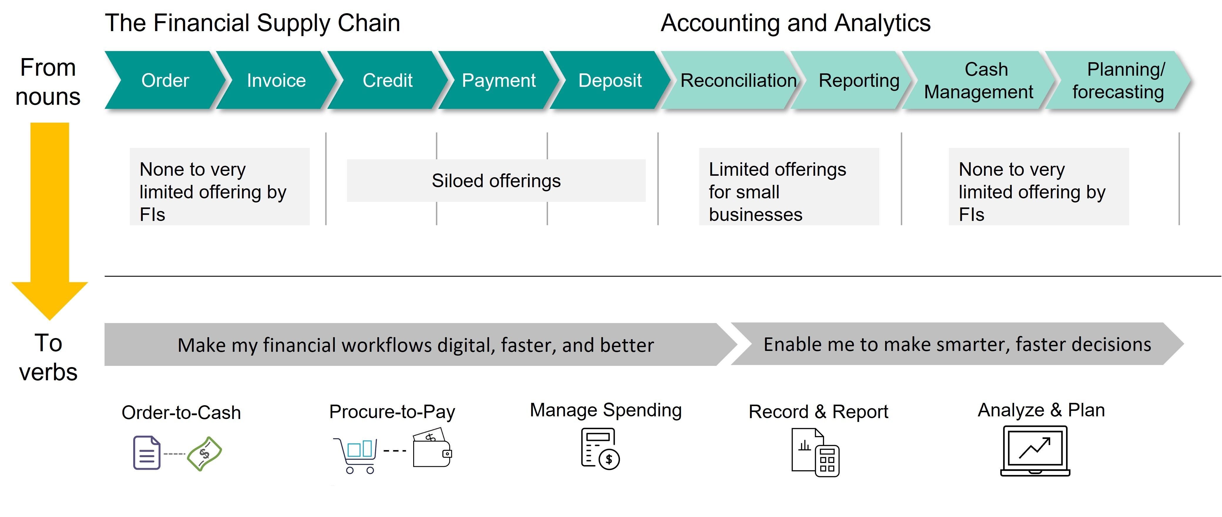 How can small business bankers change to seize opportunities? By moving away from delivering “nouns,” that is, products, to enabling “verbs,” that is, action on the part of customers. “Make your business run better and grow” is the new rallying cry.