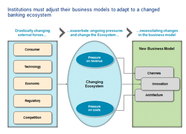 Against this backdrop, banks face the ever-present pressures of increasing revenue and reducing cost. To execute against these mandates they must focus on their customers, improve on how they organize people, process and technology to deliver to those customers, and decide the level of innovation appropriate to their individual strategy.