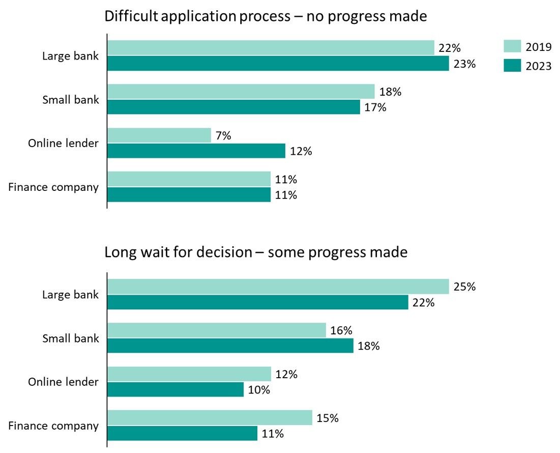 Small business dissatisfaction with the process remains (% respondents reporting a challenge). Lenders have an attractive opportunity to differentiate.