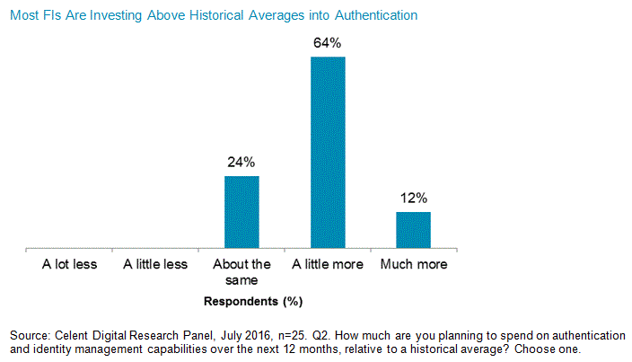 - Over the next 12 months, most FIs are planning to invest above historical average into authentication and identity. Customer demands for convenience and security, and rising levels of fraud are the primary drivers for investment.