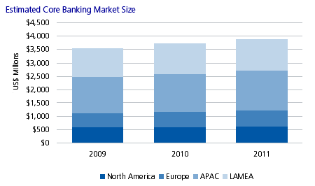 A core banking system forms the central unit of a financial institution, and banks around the world have adopted modern core banking systems to support and upgrade their products and services and survive in the competitive environment. The core banking market size is estimated to be around $3.5 billion for the year 2009 and is expected to grow to around $3.9 billion by 2011. Over 75% of the core banking revenues are due to new core banking implementations around the world.