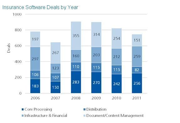 The report breaks down deal activity by carrier size, type of deal, four broad metacategories (core processing, distribution, infrastructure and financial, and document/content management), and a number of subcategories. Data from previous Deal Trends reports are used to look at longer-term trends, and leading vendors for each metacategory are identified.