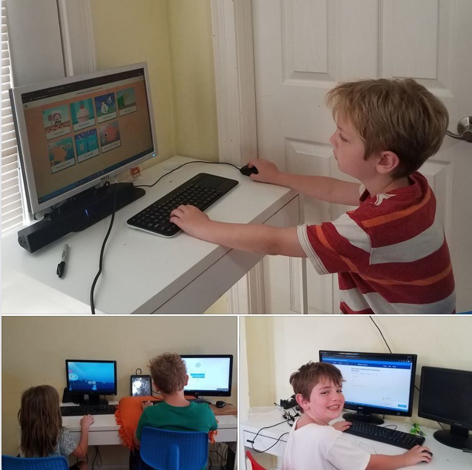 Each kid already had an older Dell machine setup for them with Windows 10. The kid in the white t-shirt is tech support.