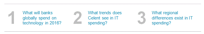 In the report Global Tech Spending Forecast: Banking Edition, 2016, Celent analyzes IT spending trends across North America, Europe, Latin America, and Asia-Pacific. The report compares and contrasts the direction of IT spending trends.