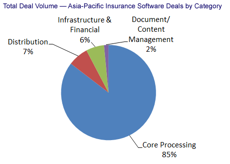 Vendor software deals in the Asia-Pacific insurance market were primarily smaller insurers for product calculation and core processing functions.