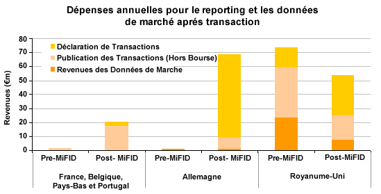 Avec la directive MIF, Celent estime qu'annuellement, plus de 100 millions de transactions supplémentaires vont faire surface dans les trois plus grandes juridictions de l'Union européenne (France, Allemagne et Royaume-Uni). Les dépenses vont également augmenter mais plus faiblement: elles devraient passer de 38 millions d'euros par an à près de 50 millions d'euros.