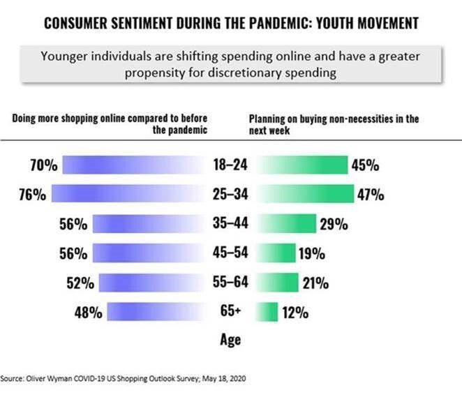 In a recent Oliver Wyman study on the impact of COVID stay-at-home guidelines on individual spending habits, they found what most might have guessed, an dramatic acceration in online shopping.