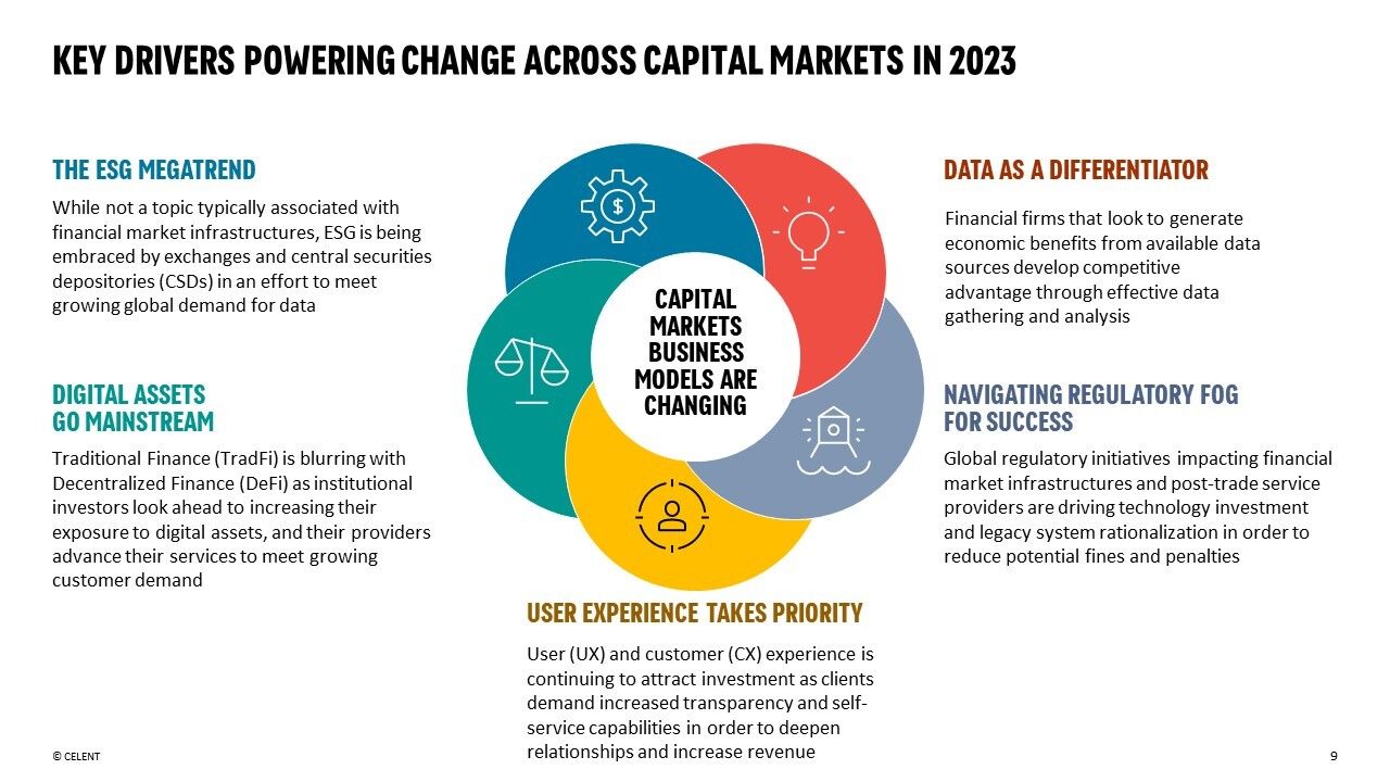 This report represents the Financial Markets Infrastructure edition of the Capital Markets Previsory 2023 report series. While FMIs are benefiting from the volatility stemming from geo-political disruption and global economic downturn, they find themselves adapting to a new digitalized ecosystem. In some cases, competition from fintechs is spurring new innovative product offerings and/or expansion into new asset classes, such as digital assets.