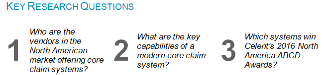 This report presents Celent's 2016 survey and evaluation of core claims systems offered to North America property & casualty insurers. Twenty-eight vendors offering 30 systems are presented in the profiles in this report.