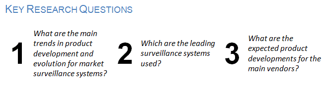 This report analyzes the specific products of the leading surveillance vendors. It discusses some of the coverage areas for surveillance products across the leading vendors. While the focus of the various vendors differs, there is also a fair degree of overlap in what most of them seek to provide. This discussion is followed by an overview of the functionality on offer for the various leading market surveillance systems currently serving the needs of the sell side and the buy side. Finally, we consider the expected areas for future product development.
