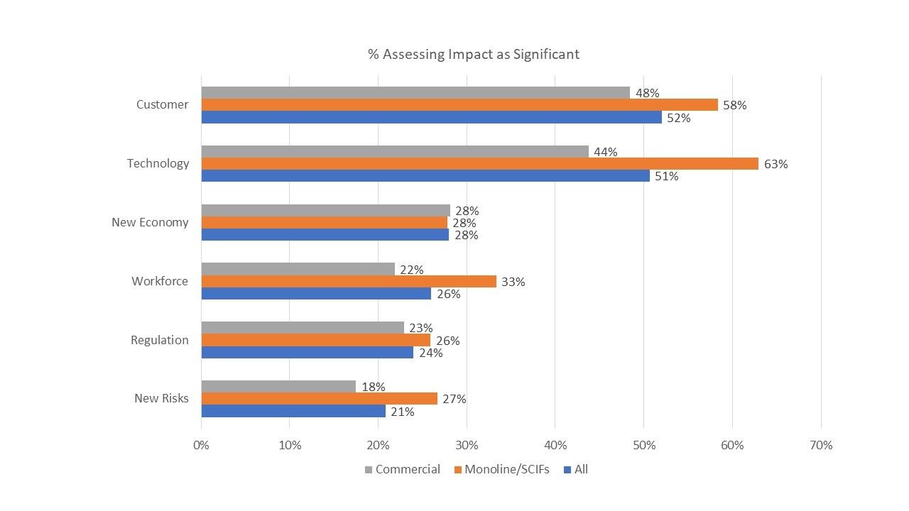 Workers’ compensation insurers looking out on the horizon see the changing customer expectations and the resulting competitive requirement of focusing on the customer experience to be among the most effective of the upcoming changes. This, combined with the power that technology can play, has a number of workers’ compensation insurers looking at their own capabilities and feeling challenged.