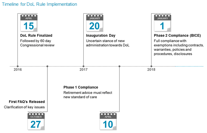 By eliminating the regulatory fault line between advised (fee-based) and transactional (or commission-based) business in retirement accounts, the Department of Labor (DoL) has accelerated a shift in industry mindset. The product-based sales approach is becoming a goals-based, client-centered, and technologically driven worldview.
