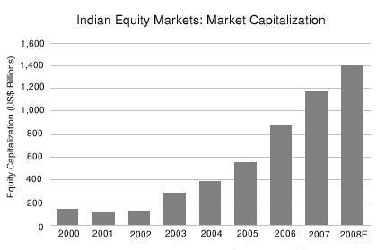 In a new report, , Celent examines the growth of this market, looking at how technology has influenced its rise as a global top performer. The Indian market has garnered the attention of the global investing community due to its high returns and widespread international participation. Over the last four years, the Indian equity market has outperformed most of the global markets, with an annual return exceeding 30% each year. The market capitalization has reached US$1 trillion, and Celent expects it to reach US$1.4 trillion by the end of 2008.