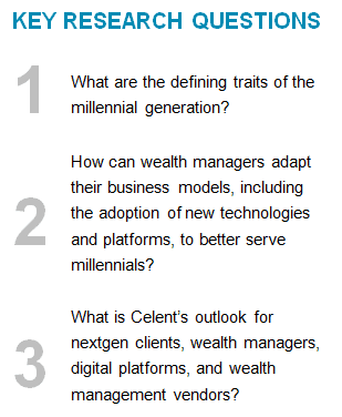 Celent’s 2014 report, NextGen Investors: Targeting the Millennial Generation, analyzed millennials’ approach to investing and personal financial management and the potential implications this posed for wealth managers and service providers.