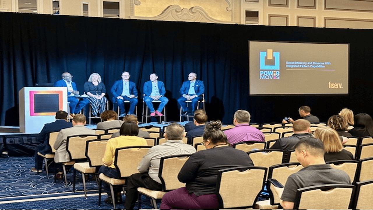 Source: Fiserv (Fiserv Forum 2024).Panelists (left to right): Dudley White (Fiserv), Caro Hatley (Lincoln Savings Bank), Craig Focardi (Celent), Nathan Baumeister (ZSuite), and Niranjan Ramaswamy (Fiserv).