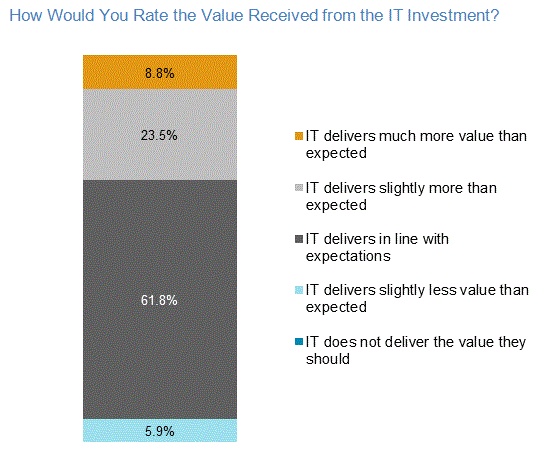 Early in 2015, Celent asked a panel of CIOs a series of questions about how they measured IT value and how their IT budget was constructed to deliver it. The aim of the survey was to extract some meaningful and simple IT benchmarks that could be applied to evaluate performance of an IT function.