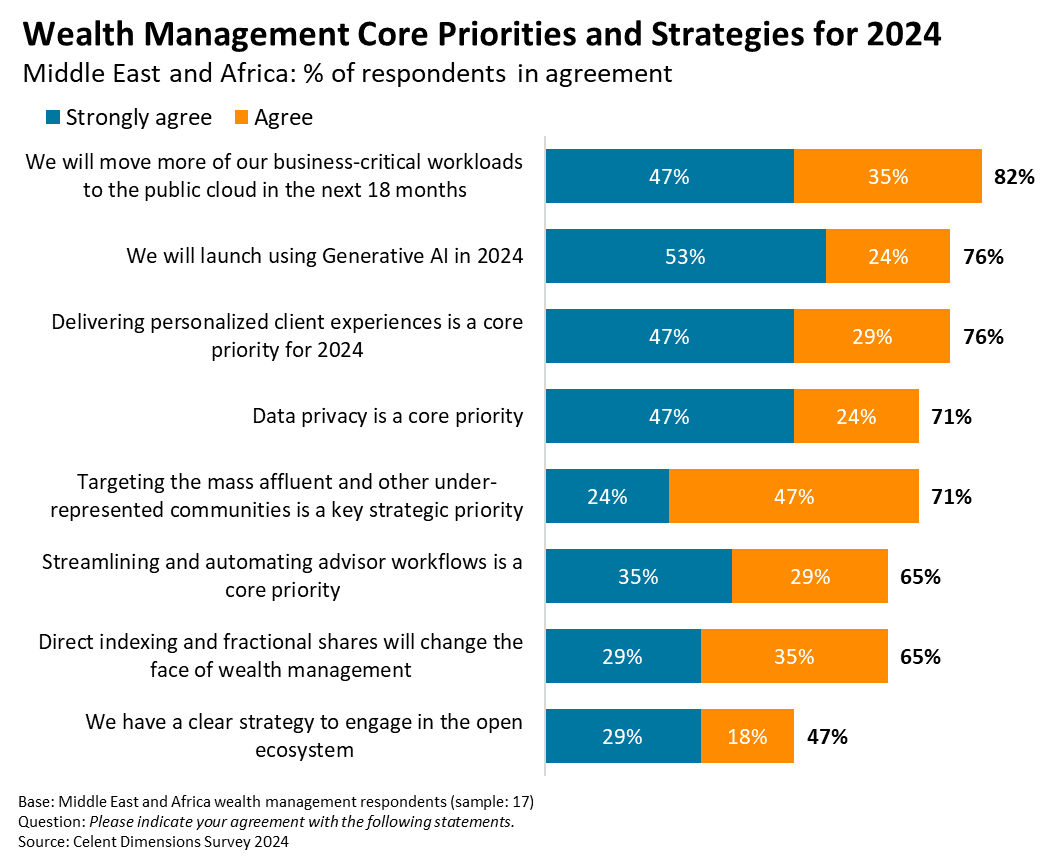 - 88% of wealth management firms in the Middle East and Africa believe they are agile in responding to new market opportunities—the highest share of respondents of any region in the world.