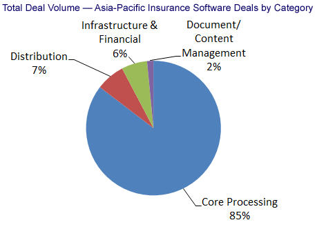 Vendor software deals in the Asia-Pacific insurance market were primarily smaller insurers for end-to-end suite and other core processing functions.