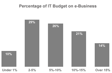 • Budget percentages devoted to e-business have remained steady at an average of 5-15%, with a dominant focus on agent e-business and homegrown or custom-built solutions.