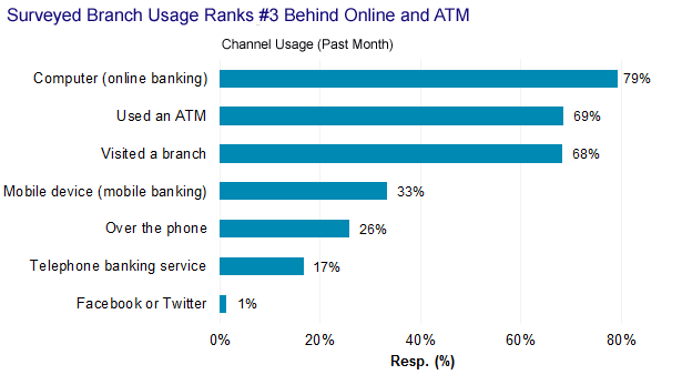 The need to raise the bar in multichannel banking is manifest, driven by consumers’ growing use of multiple channels. In a June 2013 Celent US consumer survey, for example, just two-thirds of consumers used a branch in a month, while a full third used mobile banking. Over the same period, however, nearly 80% interacted with their bank online.