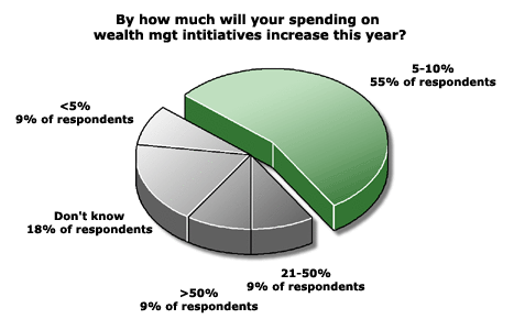 Boston, MA, USA June 30, 2004 North American Wealth Management Survey 2004 - The State of Current InitiativesAccording to a new survey conducted by Celent, spending on wealth management technology will increase on average 5-10% in 2004 as financial institutions seek to build out their wealth management capabilities. In a new 38-page report, North American Wealth Management Survey 2004裕he State of Current Initiatives, Celent Communications provides financial institutions, consultants, and technology vendors with insights into the business strategies, technology issues, and challenges facing firms building out their wealth management capabilities. The report is based on a survey of 30 leading US and Canadian firms including brokerages, banks, insurance companies, and trusts conducted during March-May 2004. "The battle lines for serving wealthy individuals have been drawn," states Celent senior analyst Pamela Brewster, author of the report. "Financial institutions realize that to win they need to arm their advisors with technology and tools to effectively meet the demands of the wealthy." Forty-two percent of participants in Celent痴 survey said they already had spent between US$1-US$5 million on wealth management technology and planned further increases in the coming year. Anticipated Increase in Wealth Management Technology Spending ![]() The survey also highlights the organizational approach firms are taking to offer wealth management services, key features/functionalities available on the advisor desktop, use of third-party wealth management vendors, channel importance, and products offered, among other areas. The report concludes with three key recommendations for firms building wealth management capabilities. "Though headway has been made in building out wealth management services, firms would be wise to take heed of the obstacles that continue to loom large including: integration issues, advisor adoption of technology, and internal coordination among divisions," said Brewster.