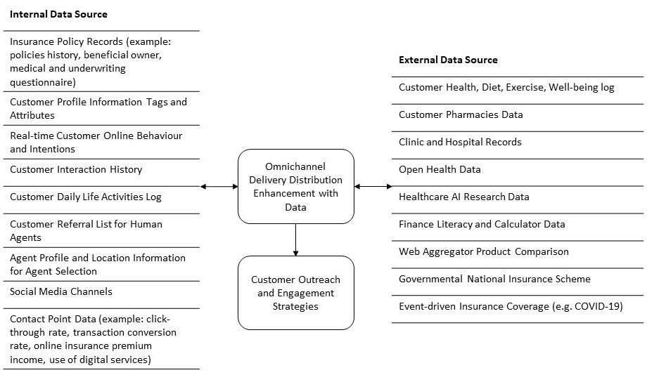 Alternative data sources have been discussed as a possible way to provide a more digital insurance experience. In this report, we will examine data management and see how data can create a good user experience for life and health providers and customers. In this report, we will look at alternative data sources in the distribution channel of the insurance value chain. We will begin with a discussion on the current distribution workflow today. Next, we will further examine how external data can help provide an additional lens, by offering enhanced customer profiling benefits, empowered agents, and improvements in digital leads and underwriting for a more informed customer engagement strategy. We will also highlight two data solutions which can provide a more seamless exchange of data. We will then cycle back to data capture requirements of the main distribution channels - the agents and direct sales approach. In conclusion, we present the common data fields observed from the various initatives highlighted in this report.