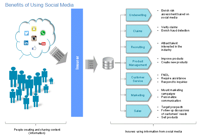 Insurers have a great opportunity to exploit some of social media’s advantages to integrate various internal processes like underwriting, claims, recruiting, product management, customer service, marketing, and sales. Moreover, social media provides insurers a direct link to a large and more responsive audience for different purposes.