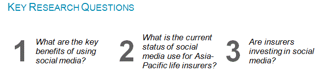 The report studied social media use by top 110 life insurance companies in Australia, India, Indonesia, Hong Kong SAR, Japan, Malaysia, Philippines, Singapore, South Korea, Taiwan, and Thailand.