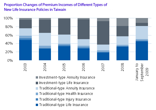 After Taiwan's economy took off, people became more affluent. The Taiwanese like to save, and 10 years ago the savings rate was already about 25%. In recent years, due to increases in commodity prices, bearish stock prices, and no corresponding increase in wages, people have become more worried about their future. The financial crisis aggravated these worries. As a result, more and more people are unwilling to spend, and the savings rate has reached 30%. Suitable insurance products that can turn savings into funds for financial planning will bring opportunities for the development of Taiwan's insurance industry.