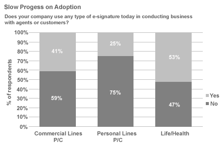 "There are tons of success stories out there," says Craig Weber, managing director of Celent's insurance practice and author of the report. "But many carriers have been slow to give their agents and customers an e-signature option, which severely constrains the value of any electronic processing of new business or service requests."