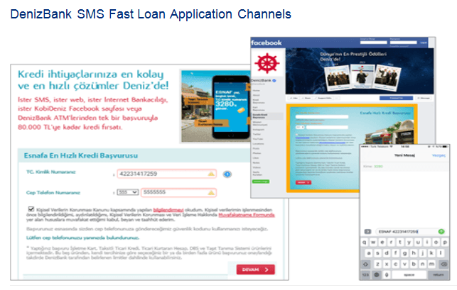 DenizBank's Fast Loan for SMEs Model Bank entry stands out as it offers five channels for a small business to apply for an umbrella credit line for five different products. Application channels span internet banking, ATMs, bank website, SMS, and Facebook. The umbrella credit line covers credit cards, installment loans, overdraft accounts, direct debits, and vehicle fueling ID.