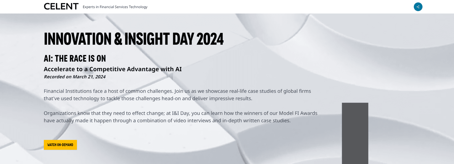 Thank you to all who participated in Innovation & Insight Day 2024 to make it a success—our award nominees and winners (linked below), attendees, speakers, and Celent colleagues.