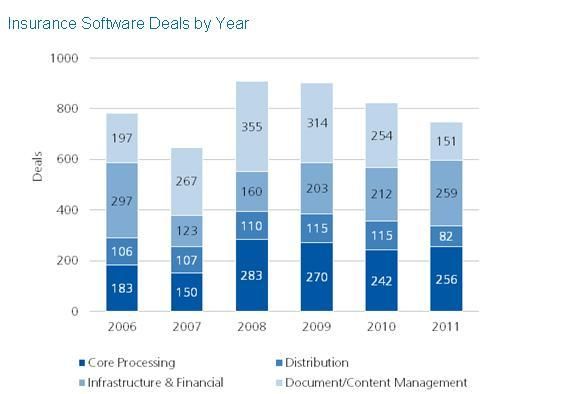 The report breaks down deal activity by carrier size, type of deal, four broad metacategories (core processing, distribution, infrastructure and financial, and document/content management), and a number of subcategories. Data from previous Deal Trends reports are used to look at longer-term trends, and leading vendors for each metacategory are identified.