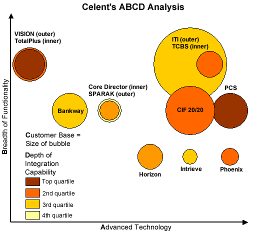 "This is the most diverse part of the market. We find 30-year-old COBOL-based mainframe solutions competing against modern fourth generation language (4GL), Windows, and Unix based systems," says Bart Narter, author of the report and senior analyst in the banking group at Celent. "These vendors are true partners to their core banking customers. Small banks rely on these vendors for nearly all of their technology needs."