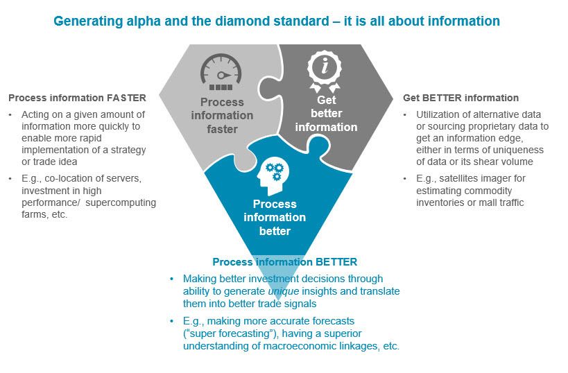 Hypercompetitive conditions in recent years have served as a reality check and a galvanizing catalyst for investment firms to address fundamental issues, especially around the contraction of margins, as well as the business case to respond to structural changes that are reshaping the industry. As investment managers seek bases of differentiation and alpha, there are three sources where this can be derived: getting better information, processing it faster, or processing it more intelligently.