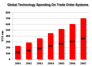 Celent estimates that total market spending for trade order management systems was US$445 million as of 2004, and that total spending will reach US$701 million in 2007.