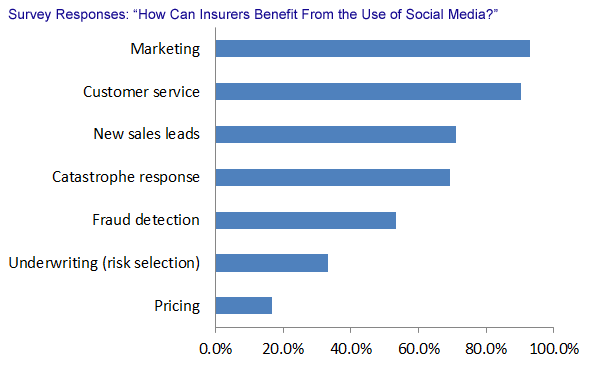 “The survey data confirms that social media use in insurance has established a firm foothold in North America,” says Mike Fitzgerald, Senior Analyst with Celent’s Insurance Group and author of the report. “We see insurers of all sizes and in most lines of business on social for marketing, customer service, sales and catastrophe response functions.”