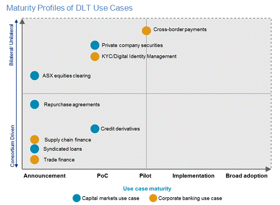 Distributed ledger technology (DLT) has the potential to provide a new architecture for the financial system in corporate banking and capital markets. Financial institutions are starting to combine their financial, technology, and regulatory ecosystems to prove use cases for DLT, and a select few are moving towards implementation. This report focuses on the near-term to medium-term applications of the technology and where implementation is likely to emerge first.