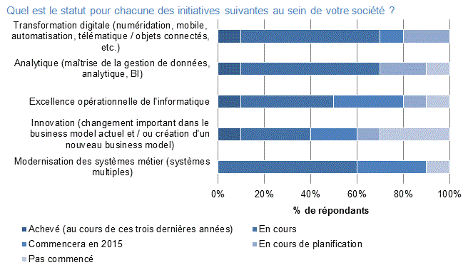 Dans ce rapport, nous nous penchons sur les projets d’investissement et les priorités informatiques des assureurs français en 2015. Les sujets sélectionnés comme l’évolution récente du marché de l’assurance en France, l’orientation de l’activité, les budgets, les initiatives relatives à la transformation numérique, le remplacement des systèmes centraux, l’innovation ainsi que les dépenses estimées sont décrits dans ce rapport.