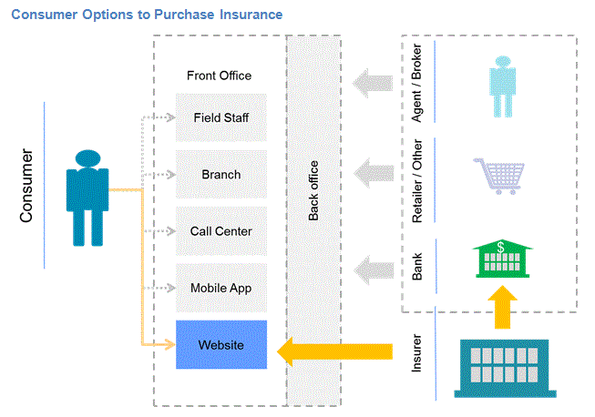 Each insurance channel uses at least one other channel to reach customers, such as a front office, call center, branch, mobile app, website, social media site, or field staff. For example, the use of online chat, avatars, and concierge services make the online shopping experience much easier, even when advice is required as part of the sales process.