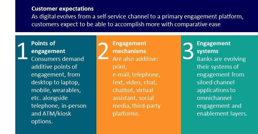 Once embraced as a uniquely self-service channel, digital has quickly become a primary customer engagement mechanism for self-service and multi-modal assisted service. Banks lag other retailers in awakening to this and in accommodating their customers' digital-first expectations.