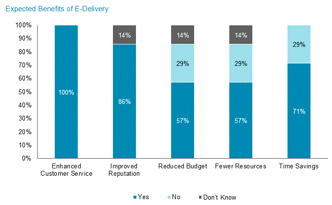 Only 25% of surveyed life insurance companies have adopted e-delivery. For many insurers, the pursuit of e-delivery has been hampered by the challenges of legacy systems and limited budgets. However, all the insurers surveyed believe that e-delivery is a worthwhile project and are prioritizing it along with other digital initiatives.