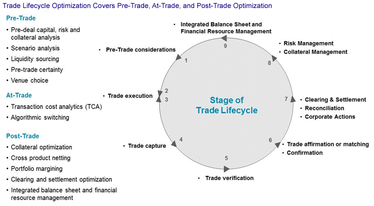 Celent predicts that trade lifecycle optimization (TLO) will gain traction. TLO is a conceptual framework for addressing challenges and opportunities across the front, middle, and back offices of securities trading, operations, and IT. TLO offers more informed decisions, which lead to multiple levels of efficiency, including trading efficiency, collateral efficiency, and clearing and settlement efficiency. Corporate actions automation tools fit squarely into the TLO framework because they allow firms to optimize post-clearing and settlement operations.