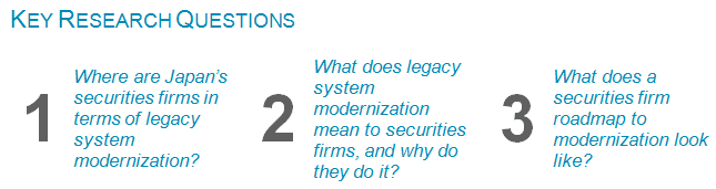 Celent has released a new report titled Legacy Modernization in the Japanese Securities Industry Part 2. The report was written by Eiichiro Yanagawa, a Senior Analyst with Celent's Asian Financial Services practice.